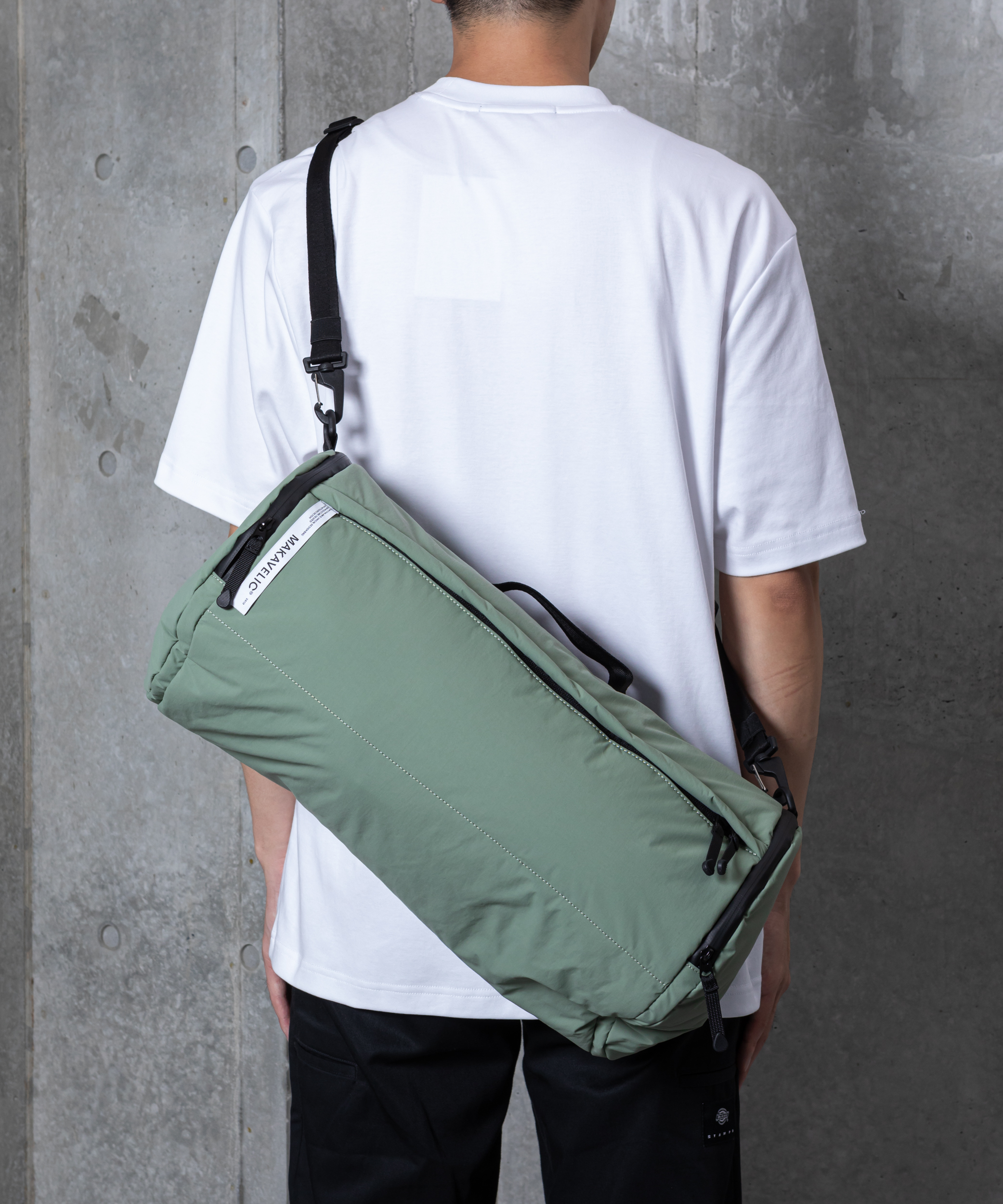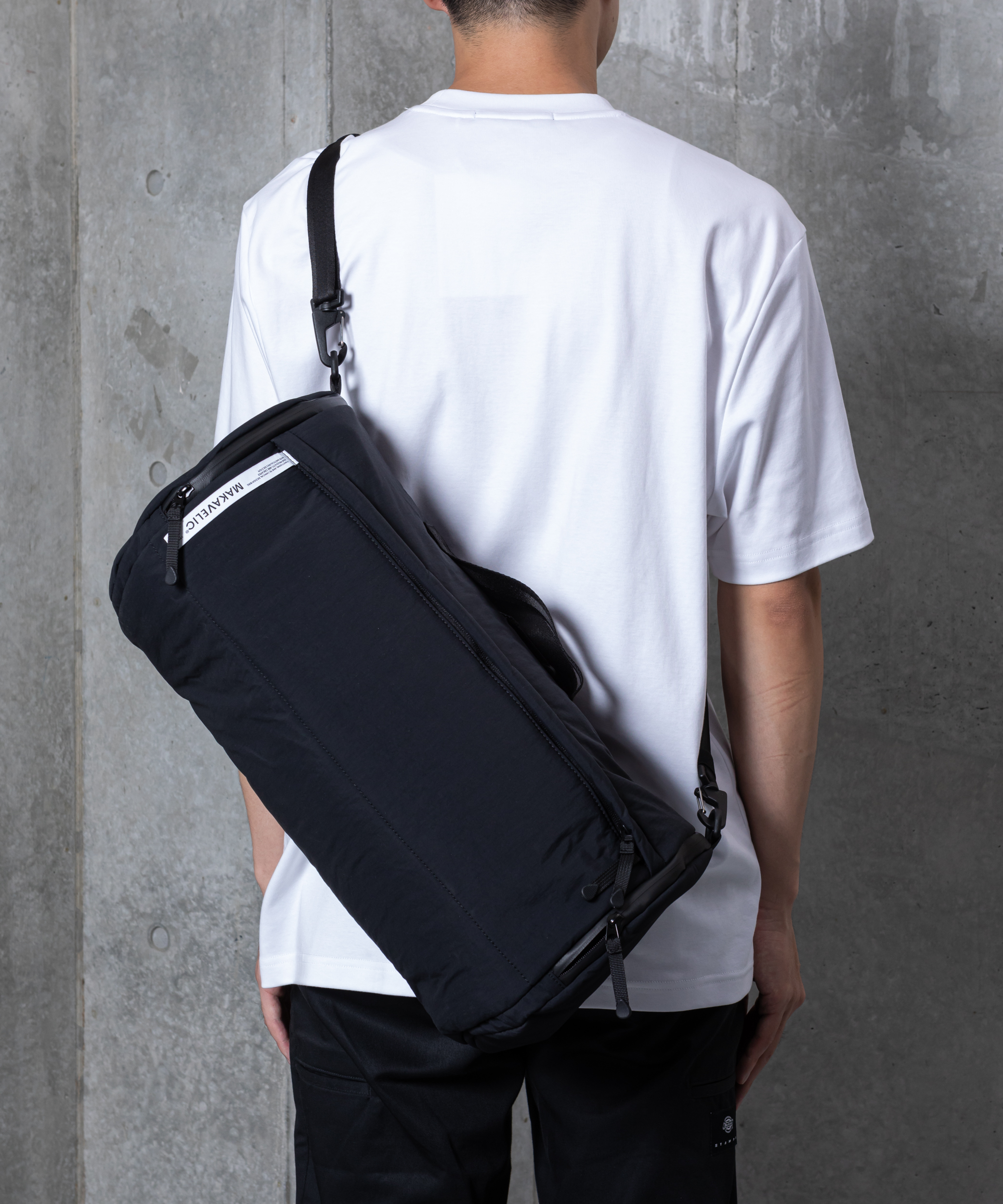 Cloud 3way Boston Bagは、ウォッシュ加工を施したナイロン生地を使用した独特な風合いが魅力の大容量バッグです。2泊3日程度の荷物にも対応できるサイズ感で、手提げ・肩がけ・ストラップ単体での使用など、シーンに応じた3WAY仕様が特徴。NAVYとKHAKIの2カラー展開で、旅先でも街中でも活躍します。