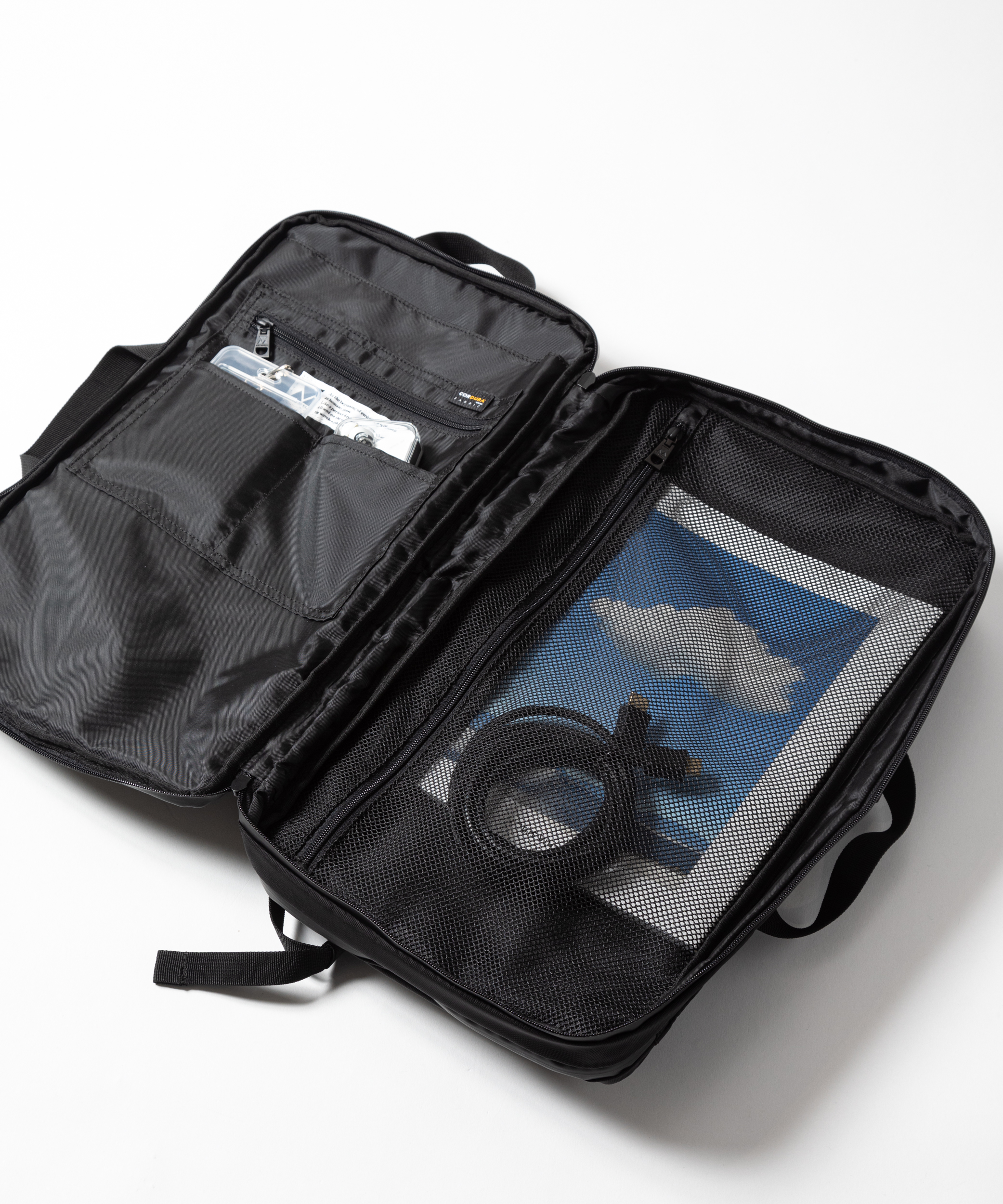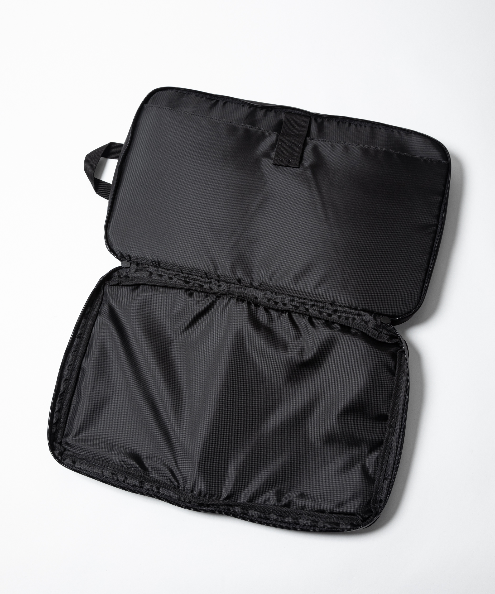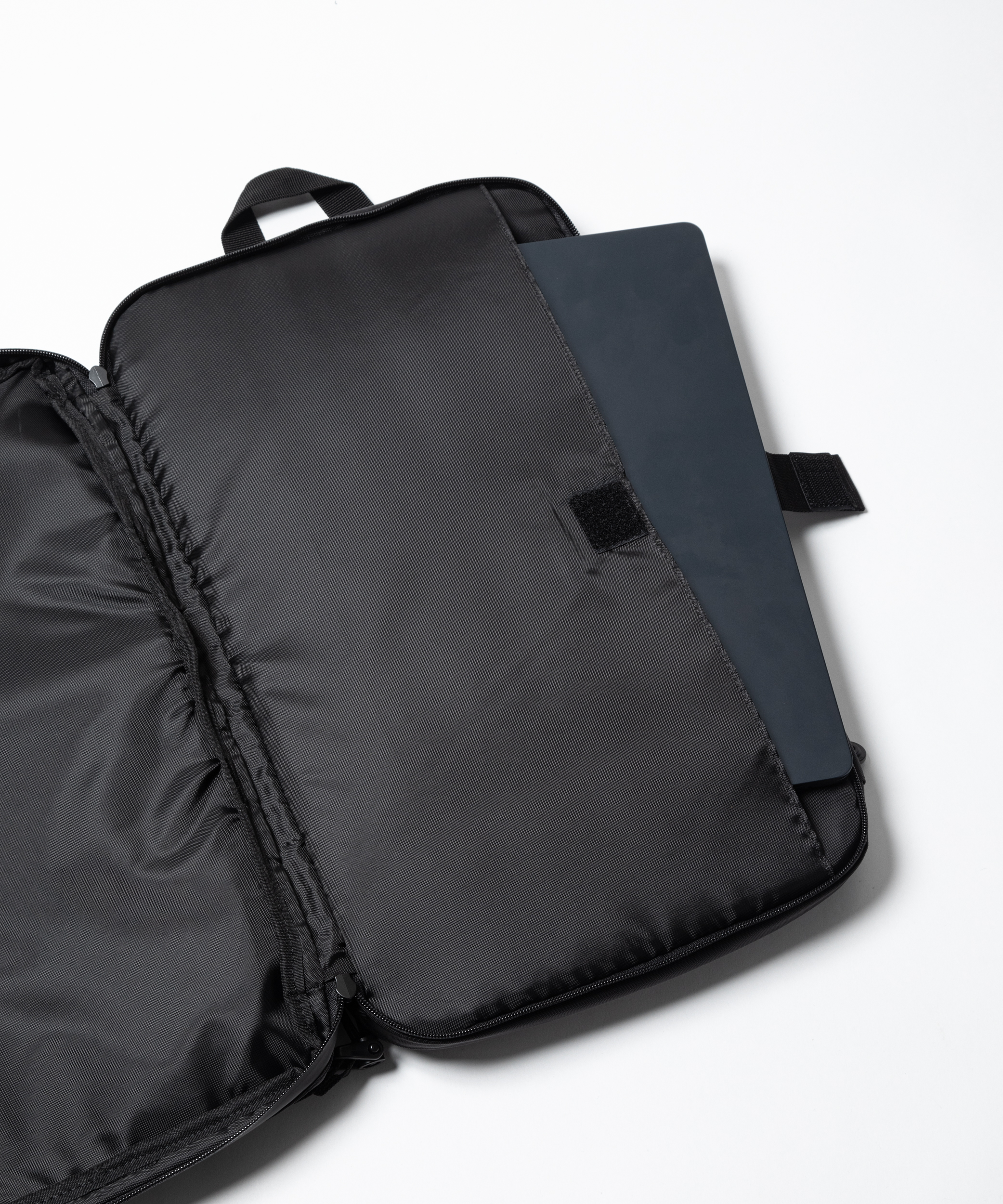 コの字型に大きく開くコンパートメントはA4サイズの書類やノートPCの持ち運びに最適。